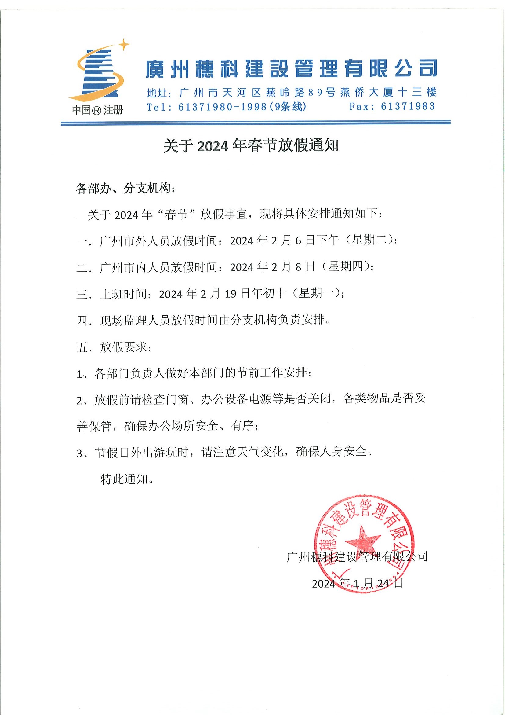 關(guān)于2024年春節(jié)放假通知