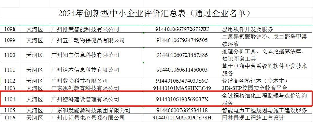 近日,廣州市工業(yè)和信息化局根據(jù)《廣州市工業(yè)和信息化局關(guān)于組織開展2024年創(chuàng)新型中小企業(yè)評價、專精特新中小企業(yè)認定和2021年專精特新中小企業(yè)復(fù)核工作的通知》《廣東省優(yōu)質(zhì)中小企業(yè)梯度培育管理實施細則》相關(guān)要求,開展了2024年創(chuàng)新型中小企業(yè)評審工作, 廣州穗科建設(shè)管理有限公司獲評定為2024年創(chuàng)新型中小企業(yè)。