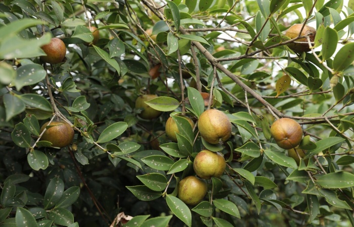油茶(Camellia oleifera Abel) ,別名普通油茶、 野油茶、山油茶、單籽油茶,是山茶科山茶屬的一種常綠灌木或喬木。樹冠偏球形或卵球形,樹皮光滑,黃褐色;葉革質(zhì),橢圓形,長圓形或倒卵形。花頂生,近無柄,花瓣白色,5~7片。蒴果球形或卵圓形?;ㄆ?0月~翌年2月,果期翌年9~10月。